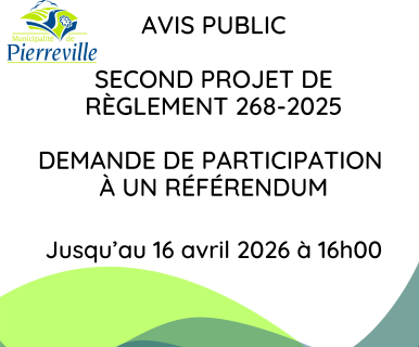 Avis public – Second projet de règlement 268-2025