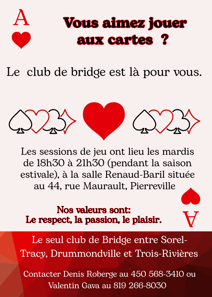 Le club de lecture de Pierreville est un groupe de citoyens qui se réunissent pour discuter de leur expérience littéraire. Notre groupe se réuni tous les deuxièmes lundis du mois pour un « Déjeuner Littéraire » auquel tous les passionnés de lecture sont la bienvenue.