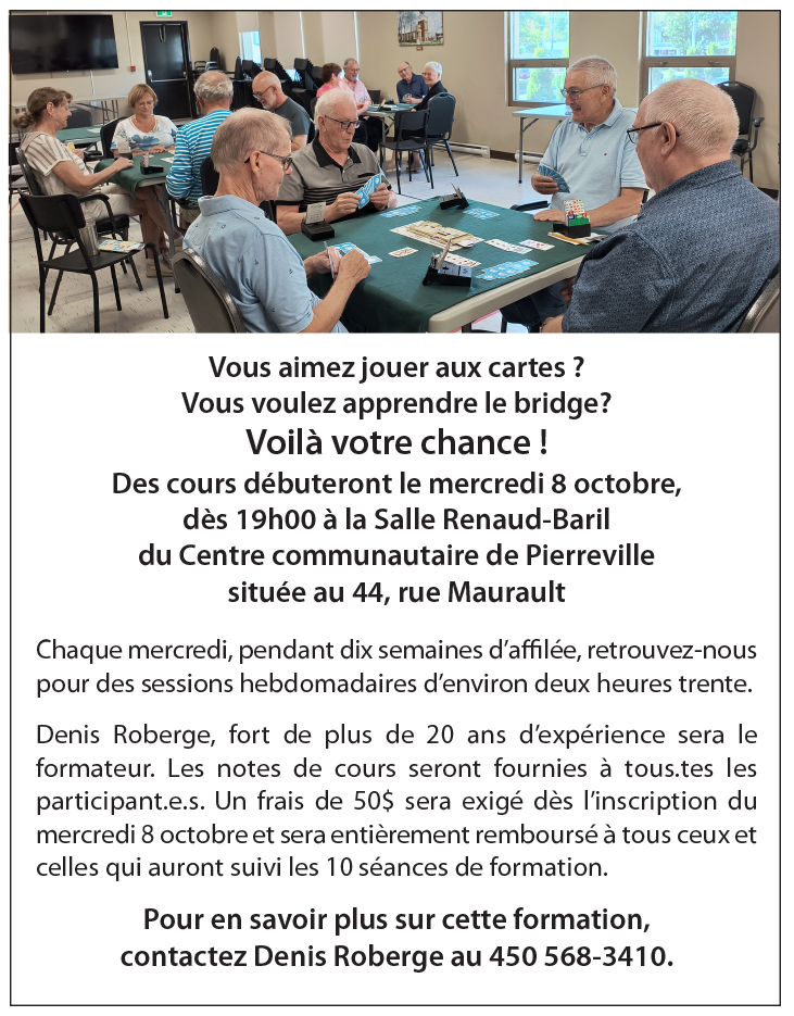Pour plus d’informations, veuillez contacter Mme Chantal Bellamy au 450 568-3500.